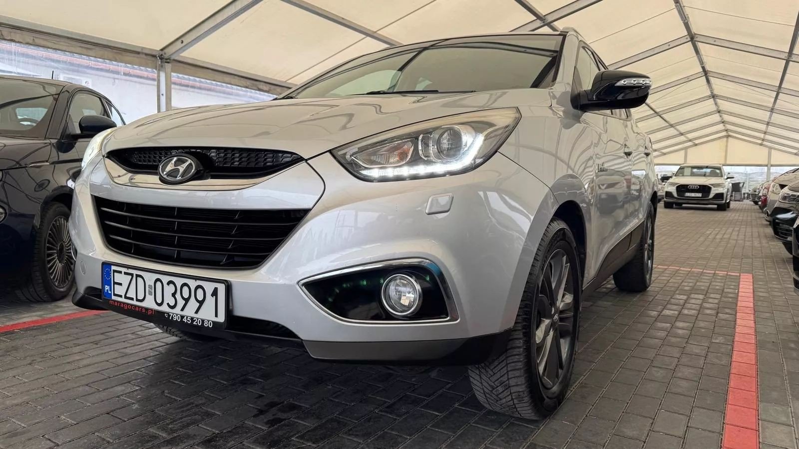 Dysponujemy oświetloną, zadaszoną halą namiotową, w której oglądanie samochodów to czysta przyjemność !